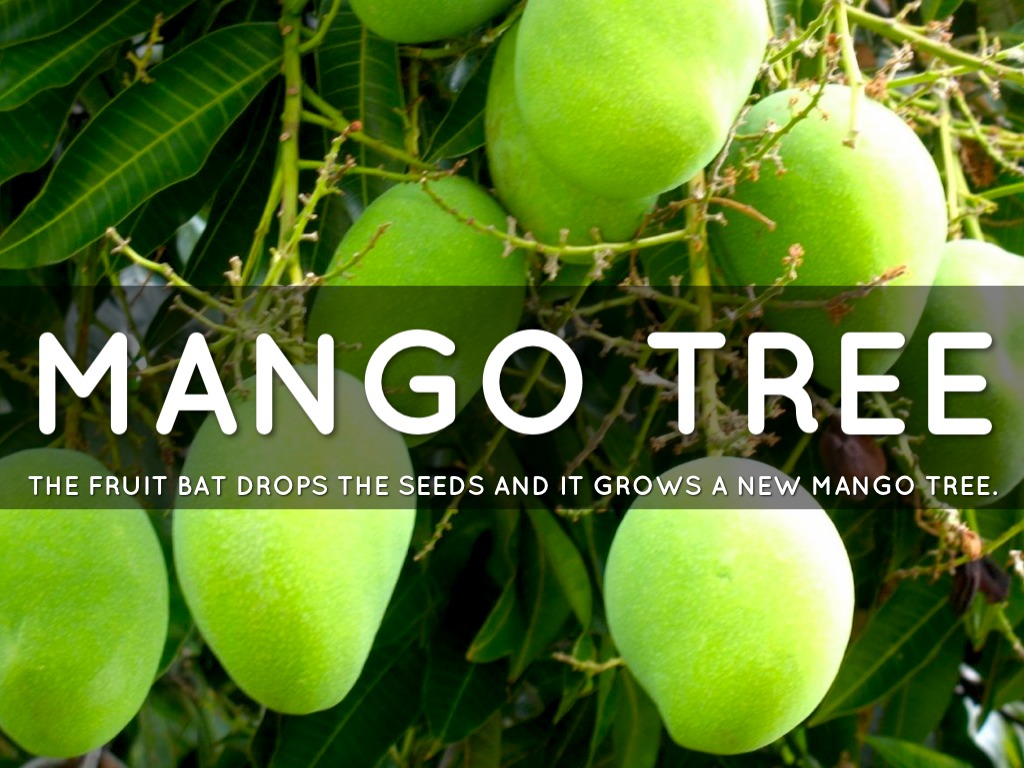 THE FRUIT BAT DROPS THE SEEDS AND IT GROWS A NEW MANGO TREE.