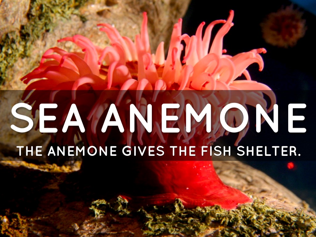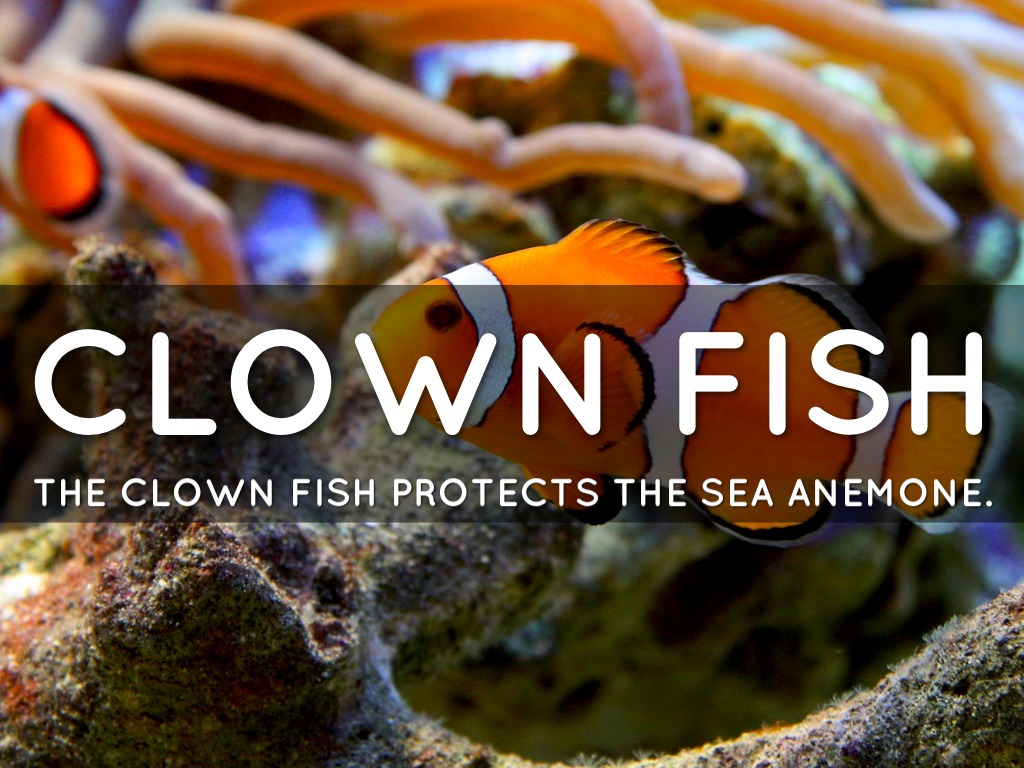 THE CLOWN FISH PROTECTS THE SEA ANEMONE.