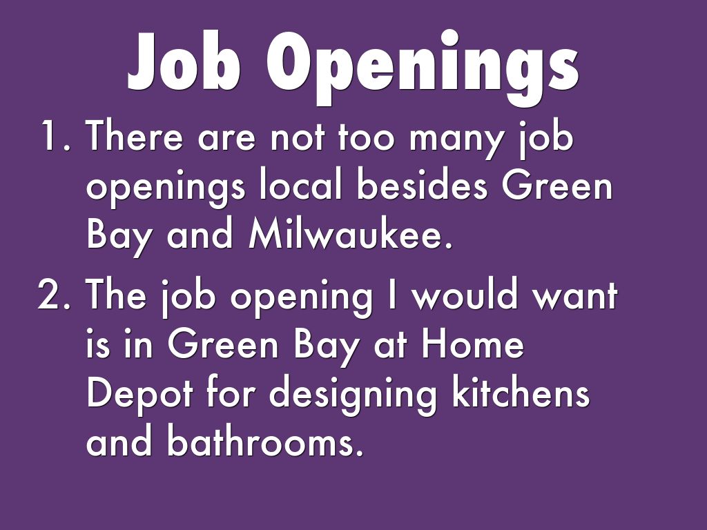 The job opening I would want is in Green Bay at Home Depot for designing kitchens and bathrooms.