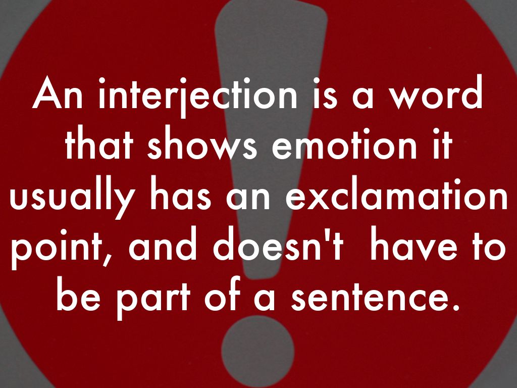 An interjection is a word that shows emotion it usually has an exclamation point, and doesn't have to be part of a sentence.