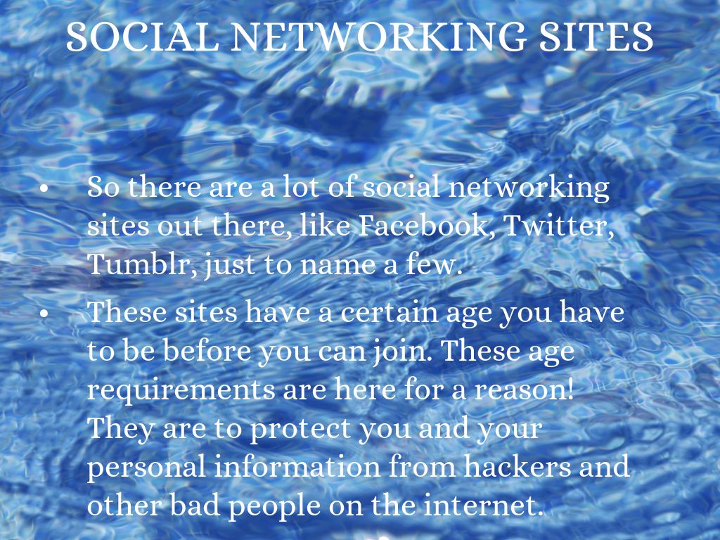 These sites have a certain age you have to be before you can join. These age requirements are here for a reason! They are to protect you and your personal information from hackers and other bad people on the internet.