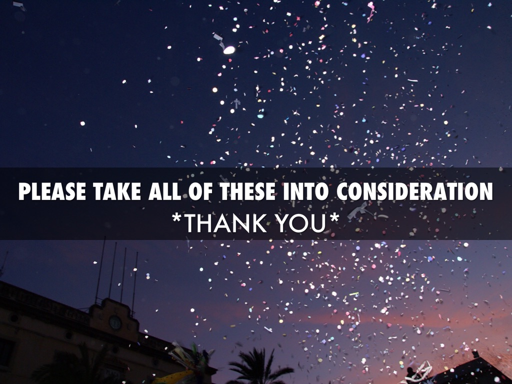 PLEASE TAKE ALL OF THESE INTO CONSIDERATION