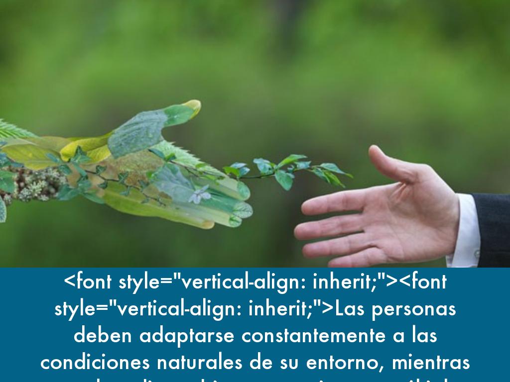 Las personas deben adaptarse constantemente a las condiciones naturales de su entorno, mientras que el medio ambiente experimenta múltiples cambios a partir del accionar humano.