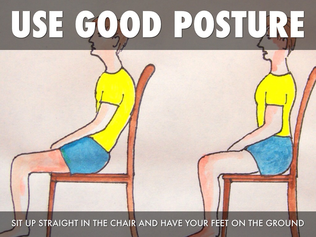 SIT UP STRAIGHT IN THE CHAIR AND HAVE YOUR FEET ON THE GROUND