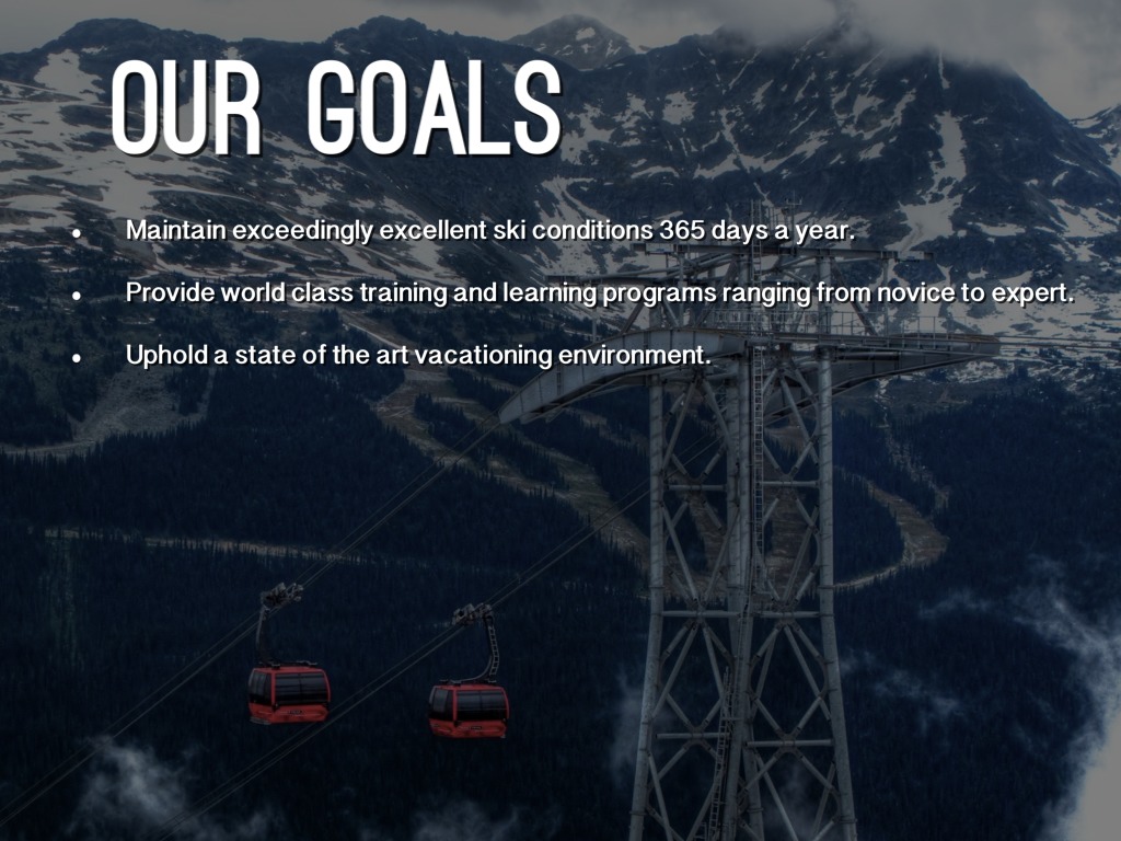 TO CONSISTENTLY BE THE BEST YEAR LONG SKI SEASON AVAILABLE TO AVID SKIERS AND SNOWBOARDERS.