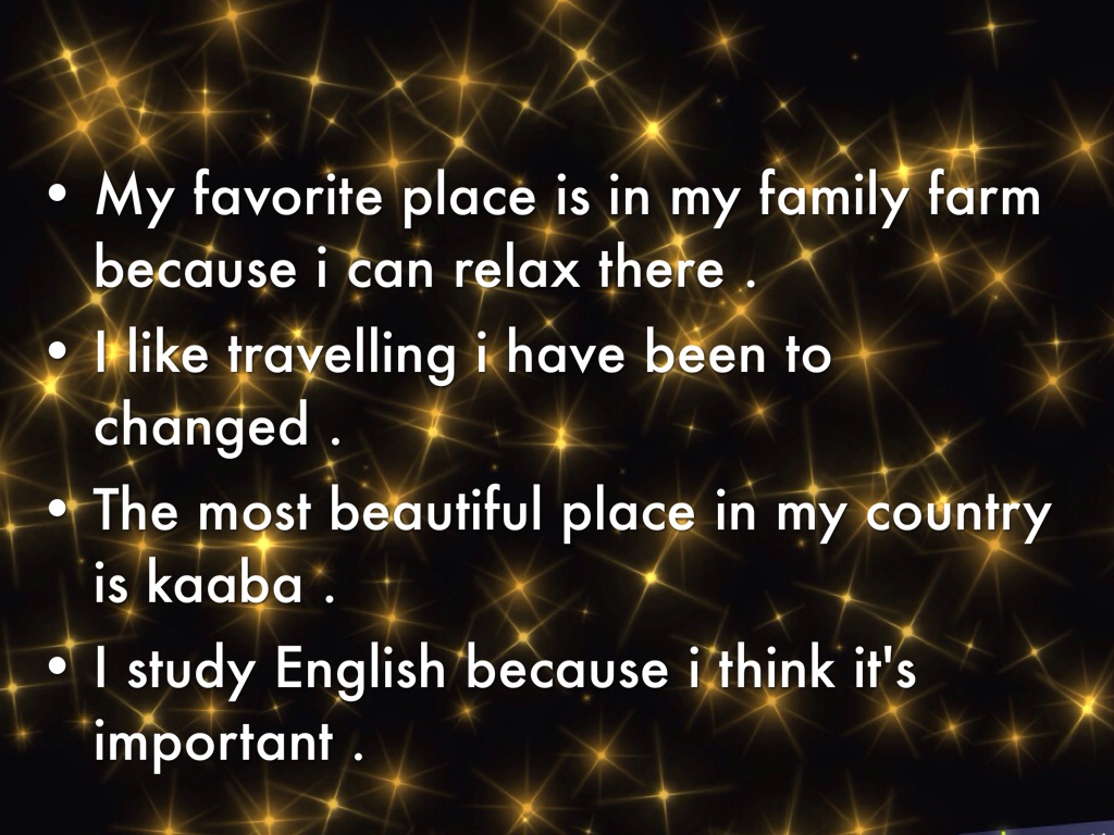 My favorite place is in my family farm because i can relax there .