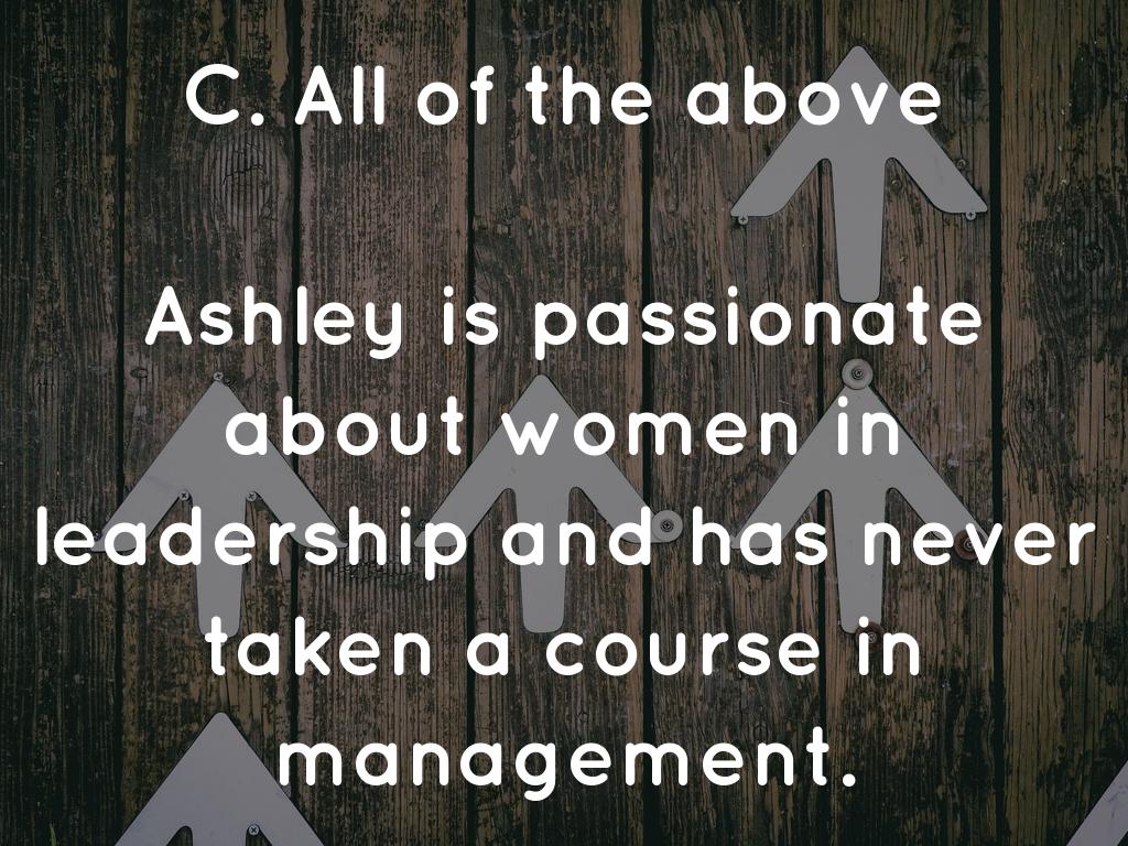 Ashley is passionate about women in leadership and has never taken a course in management.