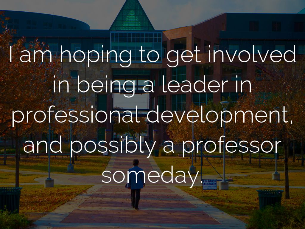I am hoping to get involved in being a leader in professional development, and possibly a professor someday.