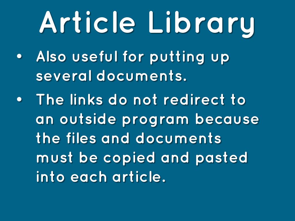 • The links do not redirect to an outside program because the files and documents must be copied and pasted into each article.