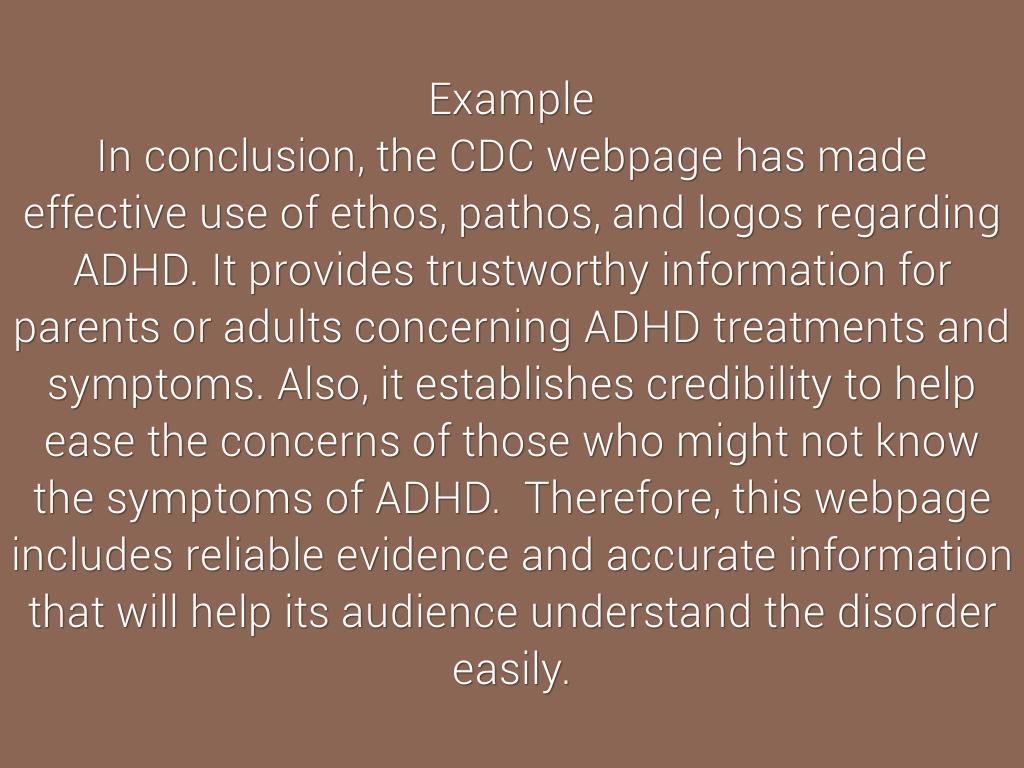 - Opinion: The CDC's webpage effectively uses ethos, pathos, and logos to convince parents and adults that their information on ADHD is credibly and trustworthy.