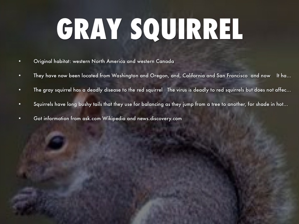 • The gray squirrel has a deadly disease to the red squirrel The virus is deadly to red squirrels but does not affect the host. This is cited as an “example of how diseases carried by invading species can act as biological weapons and speed up their conquest of native species "Also they have cost Britain 14 million dollars