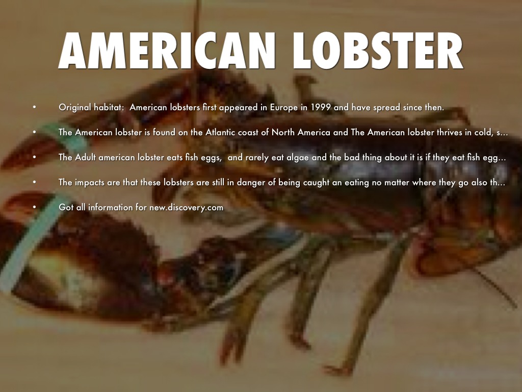 • Original habitat: American lobsters first appeared in Europe in 1999 and have spread since then.