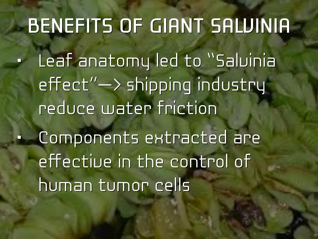 Leaf anatomy led to “Salvinia effect”—> shipping industry reduce water friction