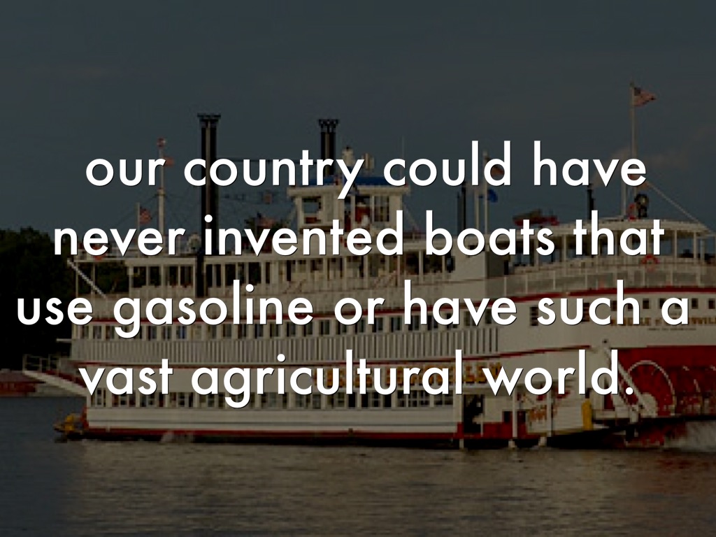 our country could have never invented boats that use gasoline or have such a vast agricultural world.