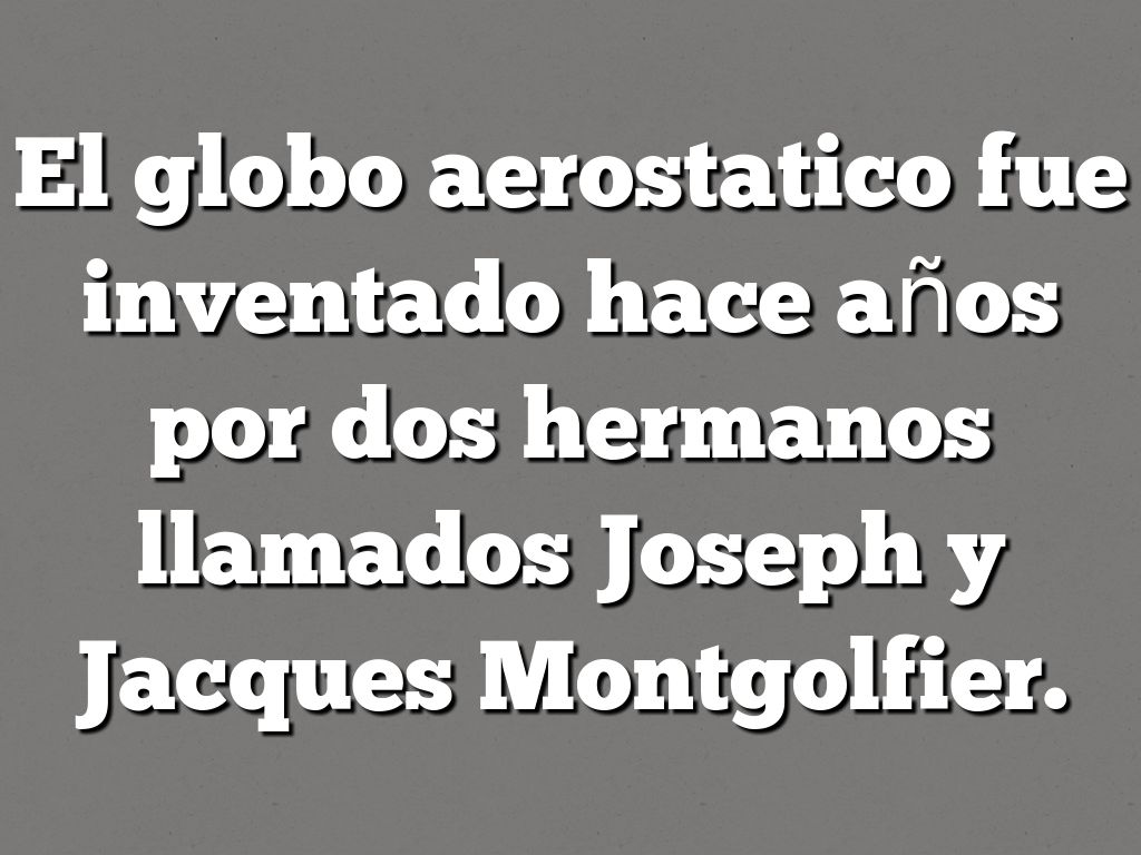 El globo aerostatico fue inventado hace años por dos hermanos llamados Joseph y Jacques Montgolfier.