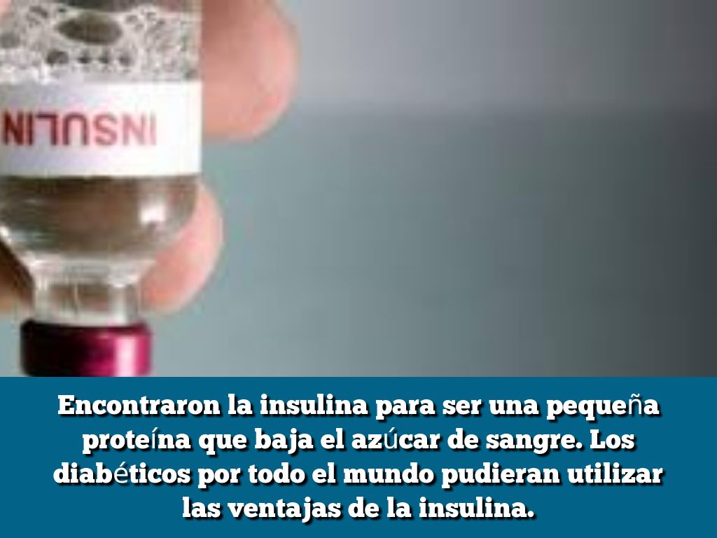 Encontraron la insulina para ser una pequeña proteína que baja el azúcar de sangre. Los diabéticos por todo el mundo pudieran utilizar las ventajas de la insulina.