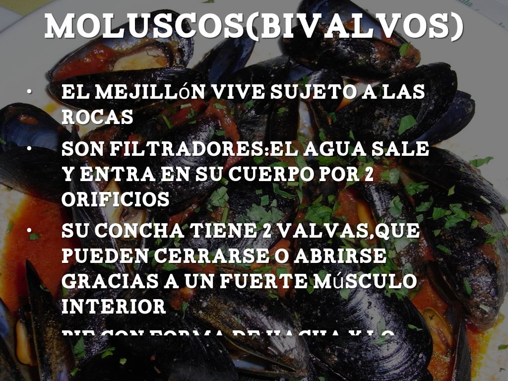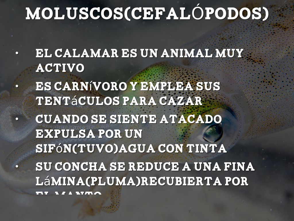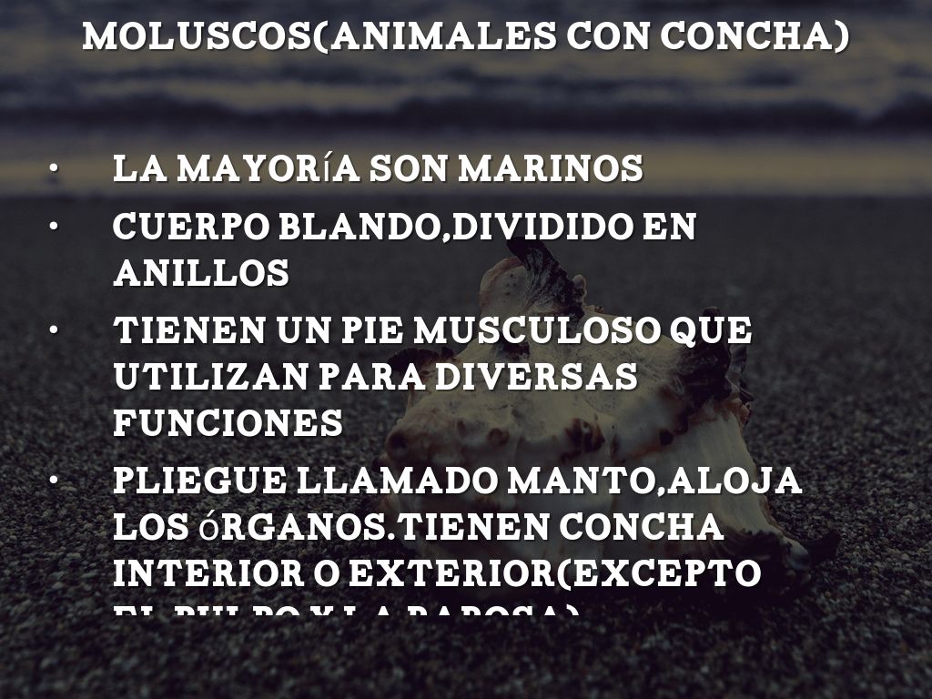 Pliegue llamado manto,aloja los órganos.tienen concha interior o exterior(excepto el pulpo y la babosa)