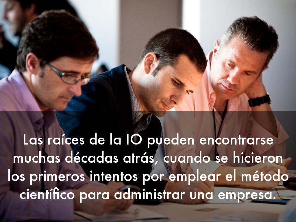 Las raíces de la IO pueden encontrarse muchas décadas atrás, cuando se hicieron los primeros intentos por emplear el método científico para administrar una empresa.
