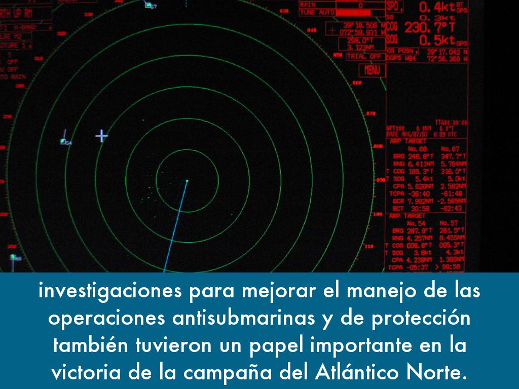investigaciones para mejorar el manejo de las operaciones antisubmarinas y de protección también tuvieron un papel importante en la victoria de la campaña del Atlántico Norte.