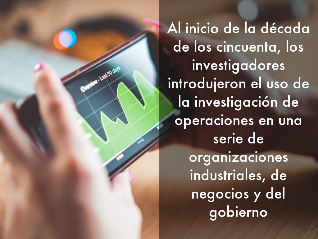 Al inicio de la década de los cincuenta, los investigadores introdujeron el uso de la investigación de operaciones en una serie de organizaciones industriales, de negocios y del gobierno