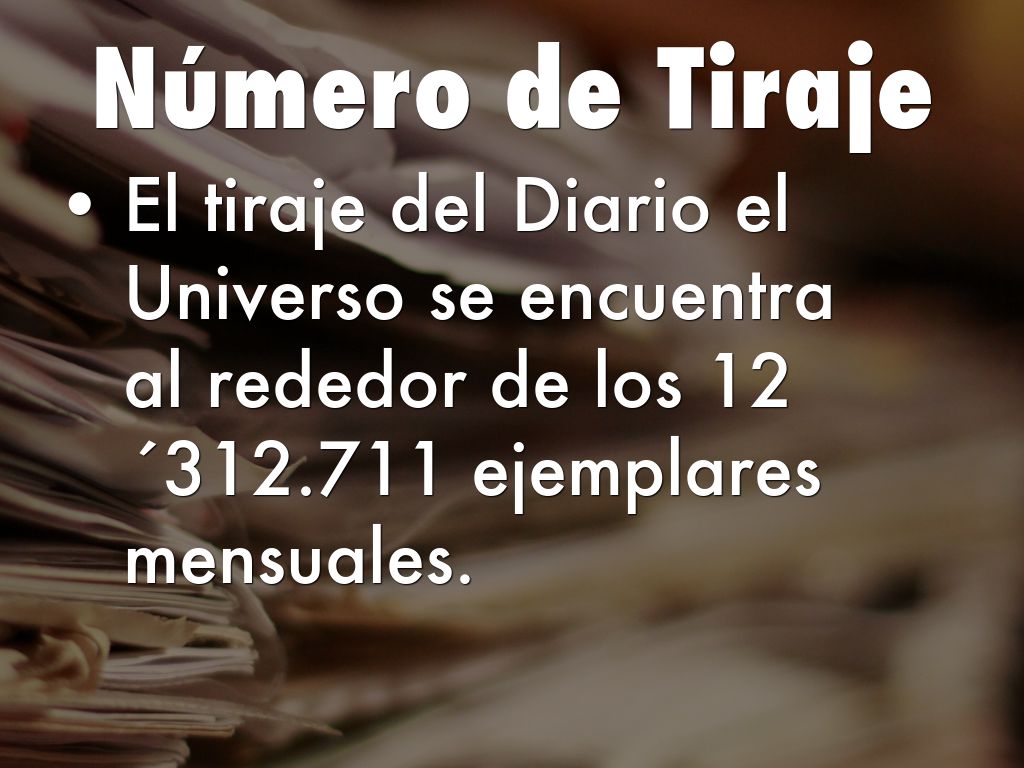 El tiraje del Diario el Universo se encuentra al rededor de los 12´312.711 ejemplares mensuales.