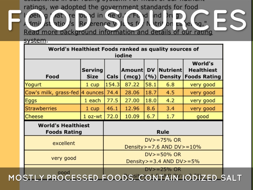 MOSTLY PROCESSED FOODS. CONTAIN IODIZED SALT