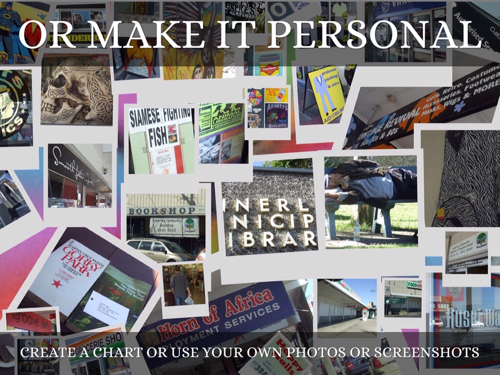 CREATE A CHART OR USE YOUR OWN PHOTOS OR SCREENSHOTS