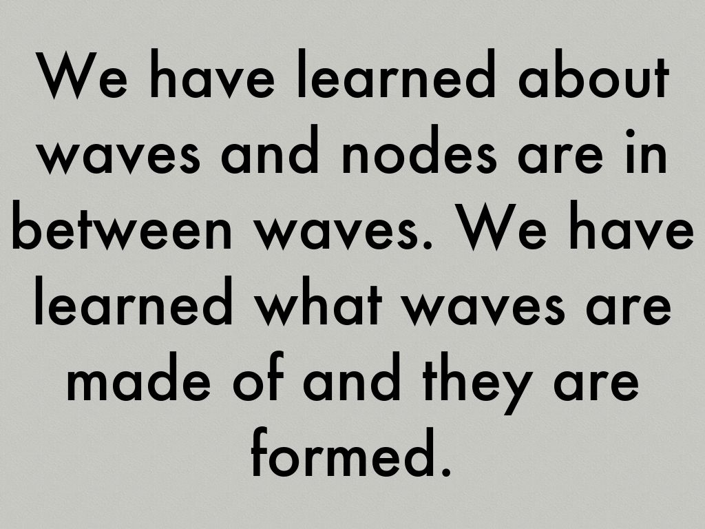 We have learned about waves and nodes are in between waves. We have learned what waves are made of and they are formed.