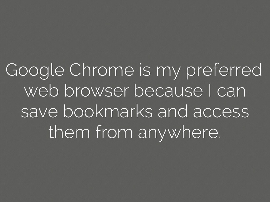 Google Chrome is my preferred web browser because I can save bookmarks and access them from anywhere.