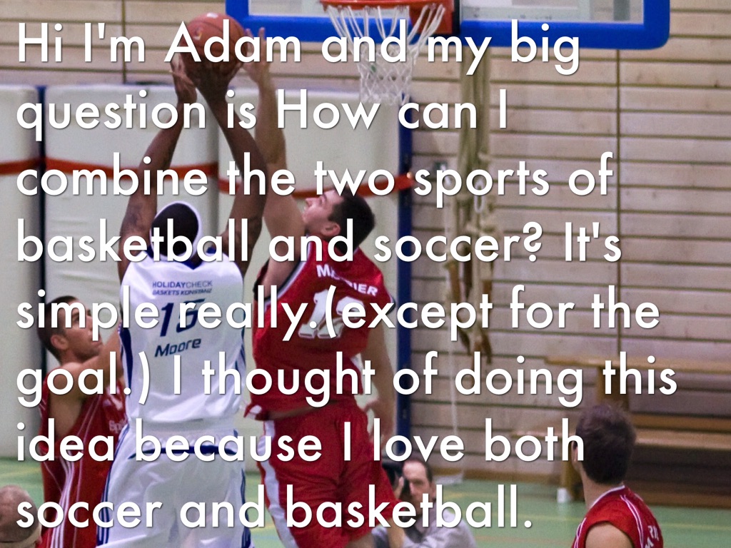 Hi I'm Adam and my big question is How can I combine the two sports of basketball and soccer? It's simple really.(except for the goal.) I thought of doing this idea because I love both soccer and basketball.