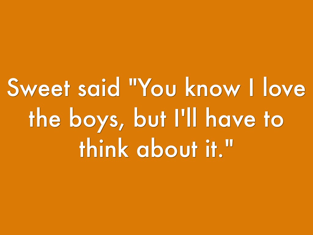 Sweet said "You know I love the boys, but I'll have to think about it."