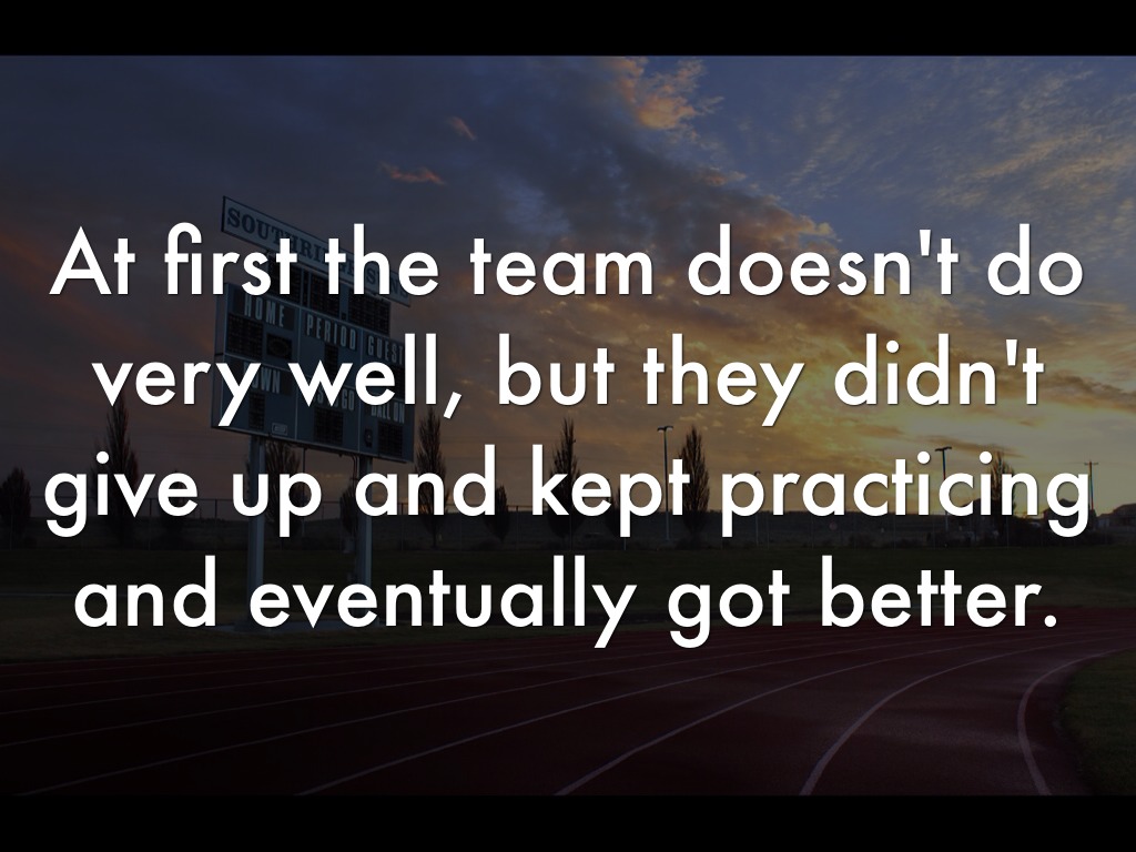 At first the team doesn't do very well, but they didn't give up and kept practicing and eventually got better.