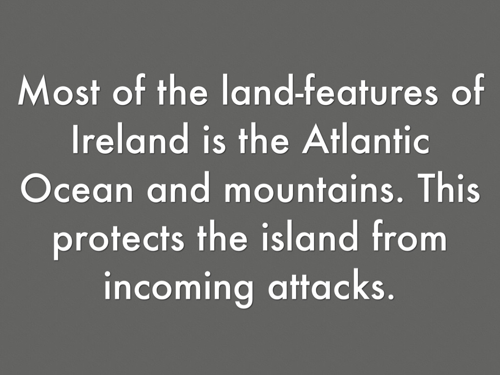 Most of the land-features of Ireland is the Atlantic Ocean and mountains. This protects the island from incoming attacks.