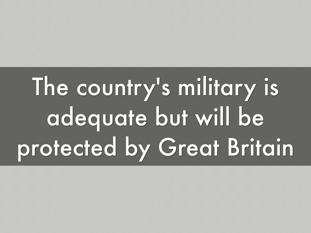 The country's military is adequate but will be protected by Great Britain