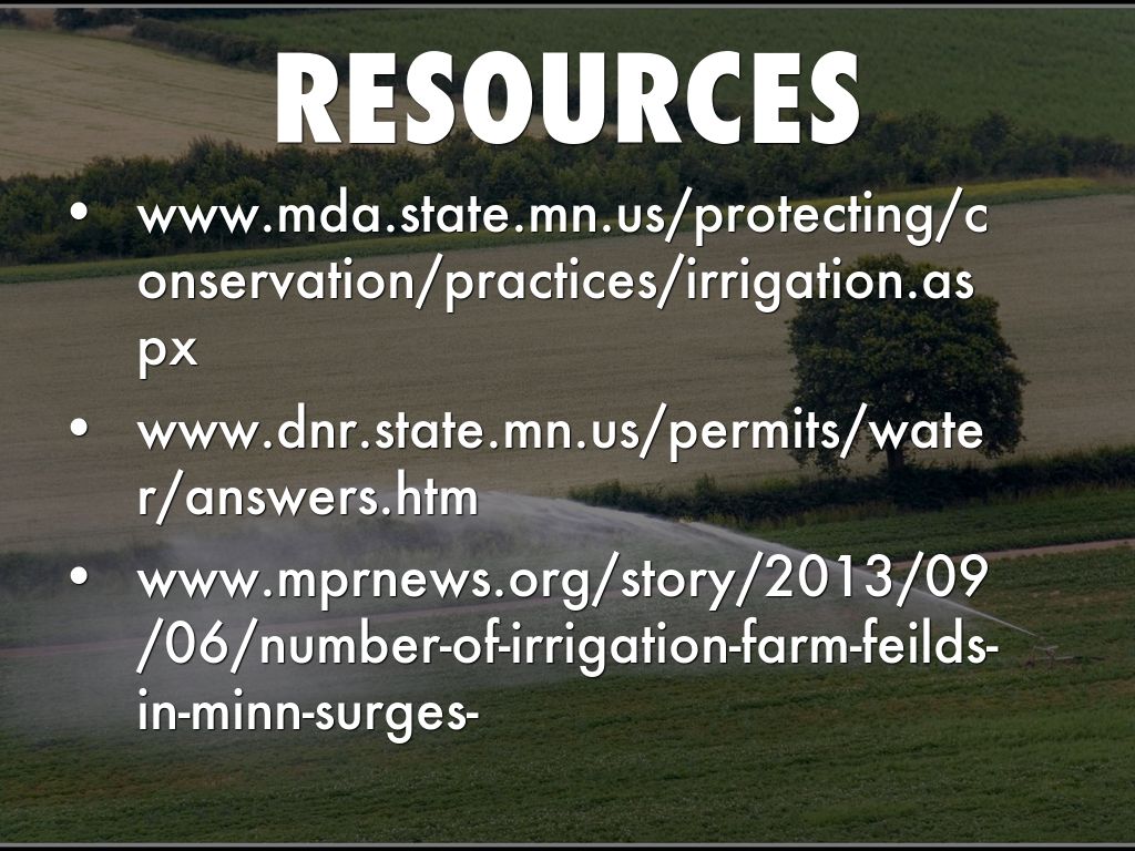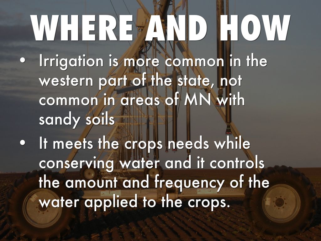 • Irrigation is more common in the western part of the state, not common in areas of MN with sandy soils