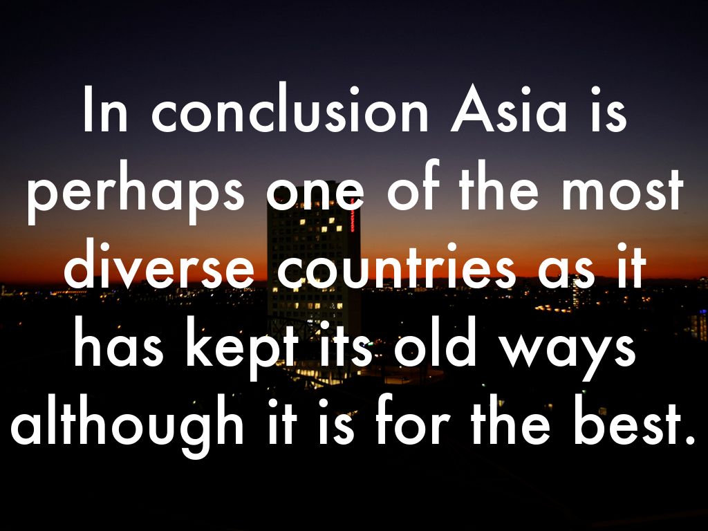 In conclusion Asia is perhaps one of the most diverse countries as it has kept its old ways although it is for the best.