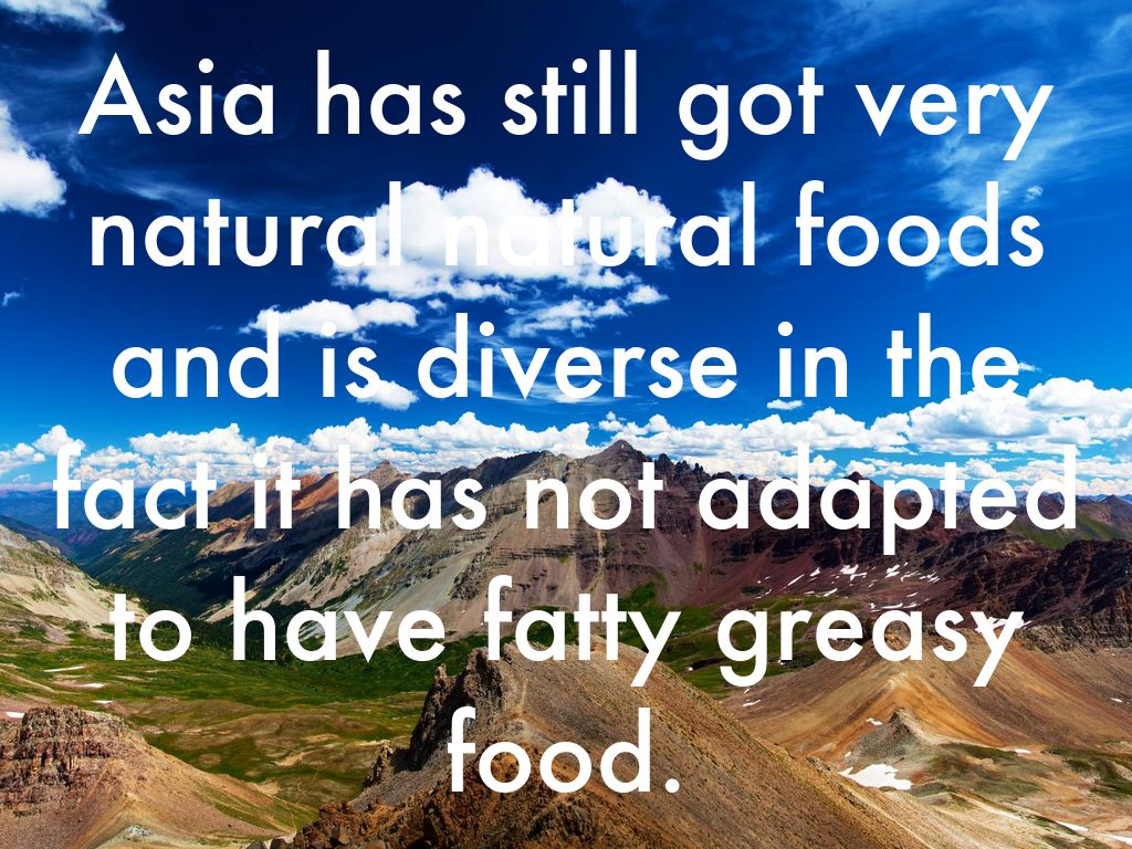 Asia has still got very natural natural foods and is diverse in the fact it has not adapted to have fatty greasy food.