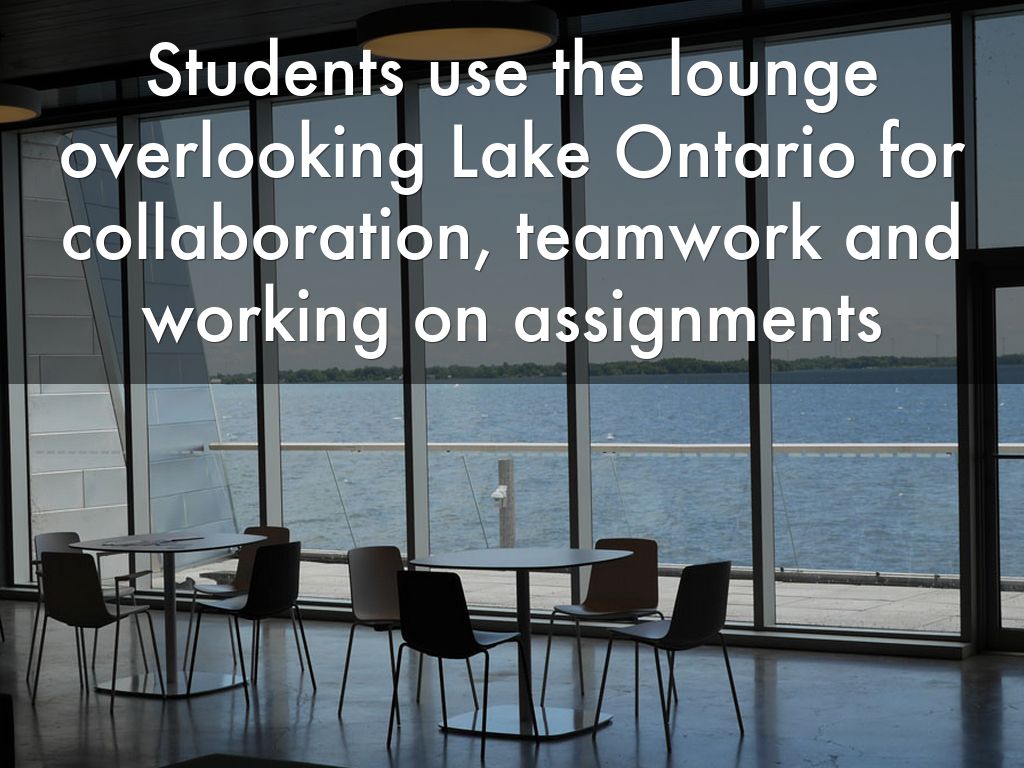 Students use the lounge overlooking Lake Ontario for collaboration, teamwork and working on assignments