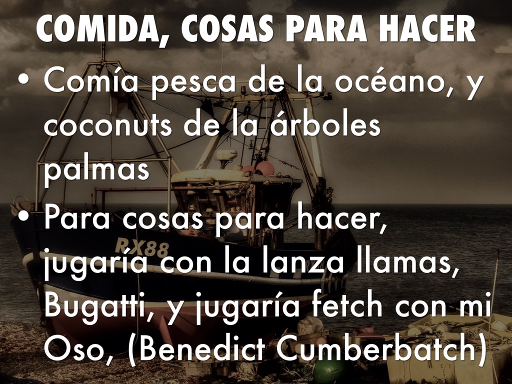 Para cosas para hacer, jugaría con la lanza llamas, Bugatti, y jugaría fetch con mi Oso, (Benedict Cumberbatch)