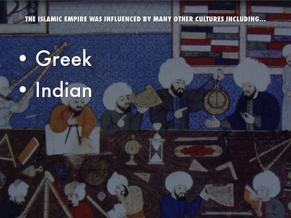 THE ISLAMIC EMPIRE WAS INFLUENCED BY MANY OTHER CULTURES INCLUDING…