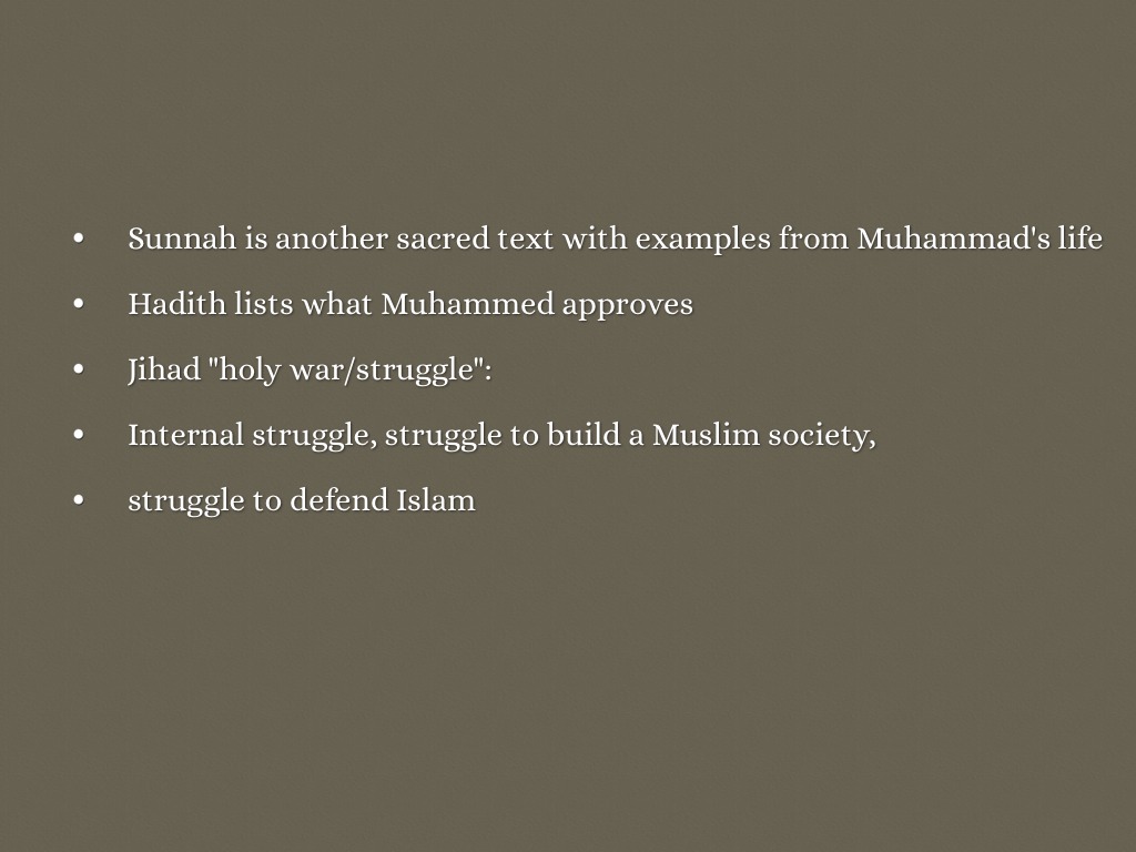 Sunnah is another sacred text with examples from Muhammad's life
