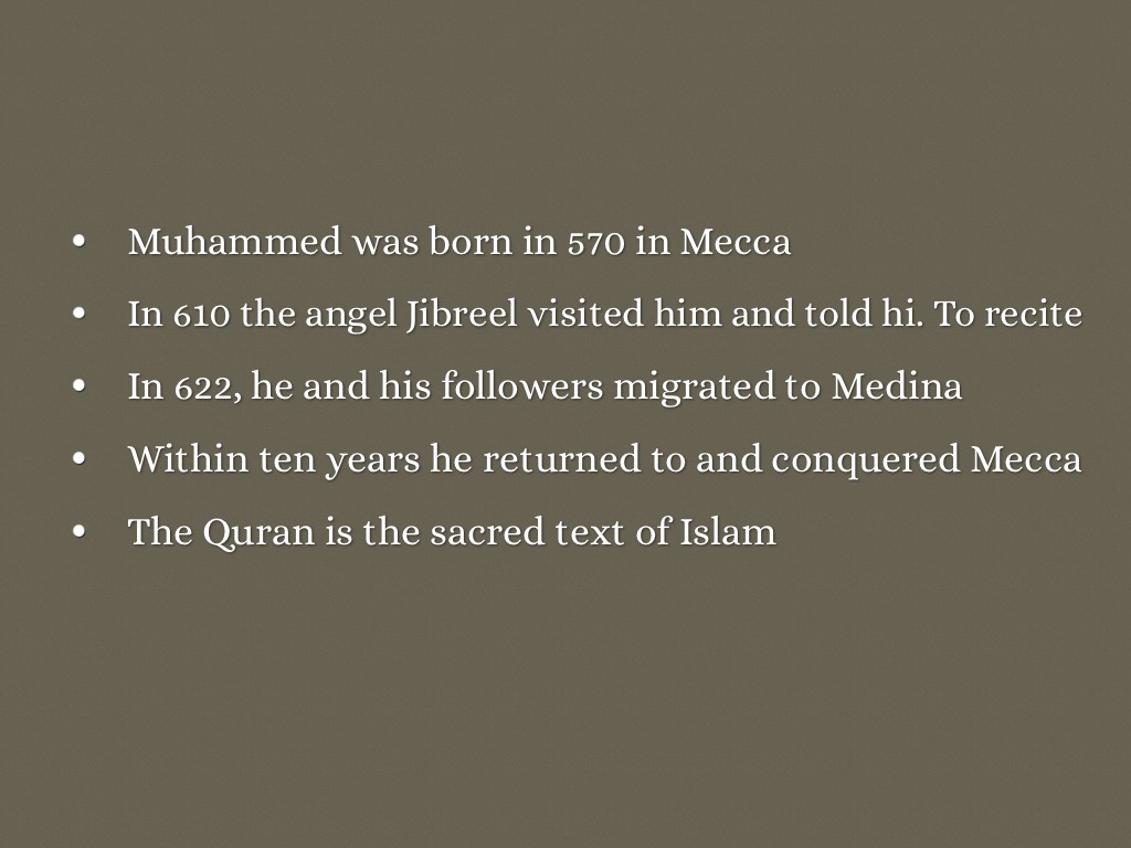 Muhammed was born in 570 in Mecca