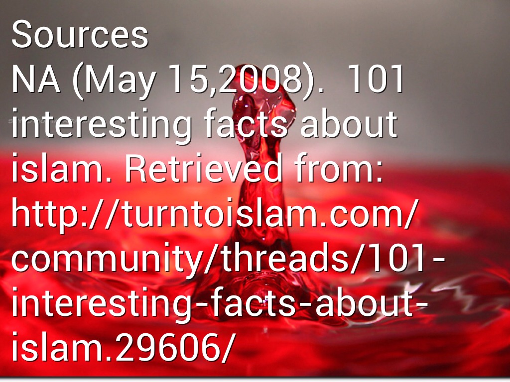 NA (May 15,2008). 101 interesting facts about islam. Retrieved from: