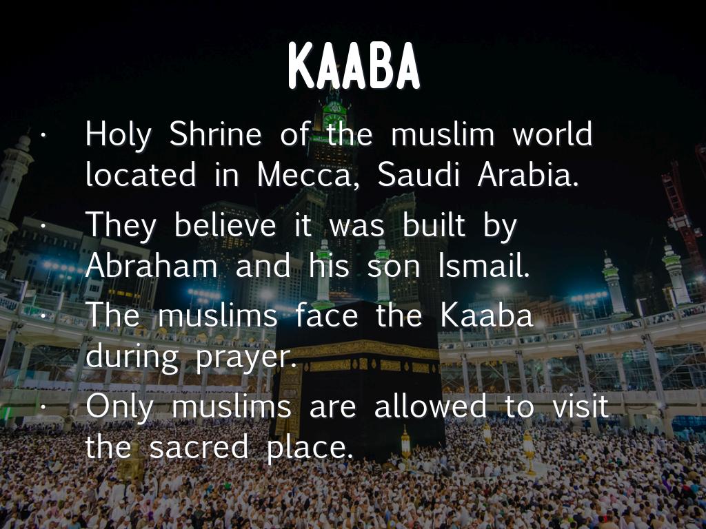 Many Christians visit other Biblical destinations such as Jerusalem and Israel since the Kaaba is the Holy Land to be used by only those of Islamic religion.