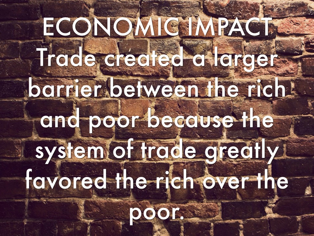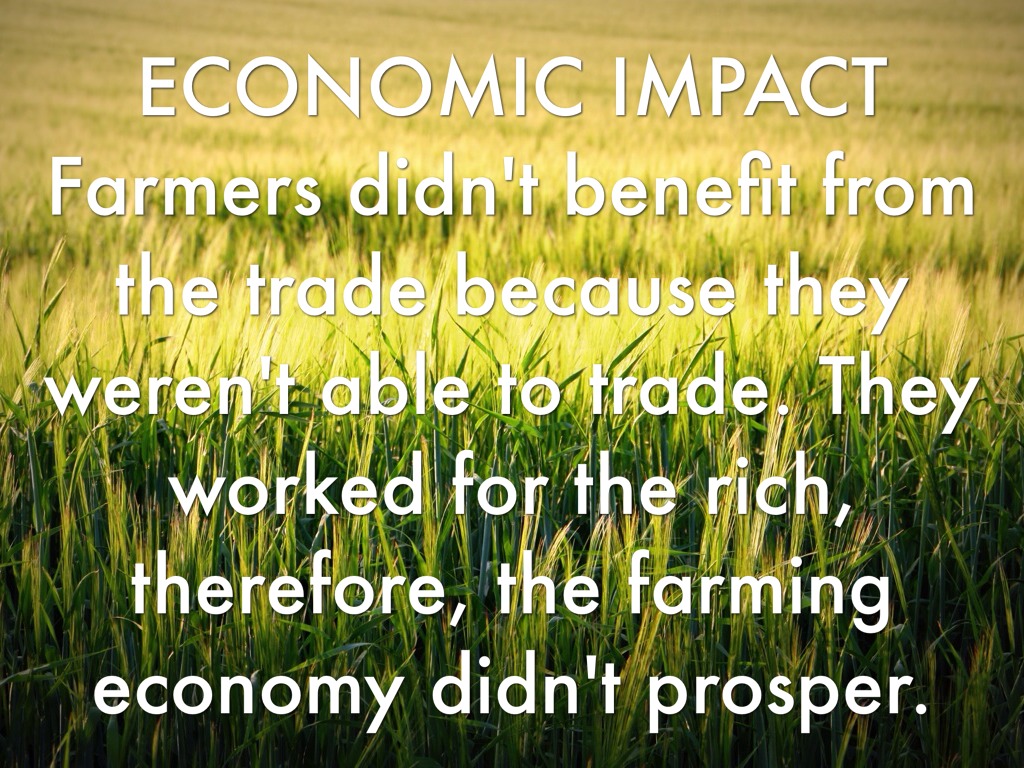 ECONOMIC IMPACT Farmers didn't benefit from the trade because they weren't able to trade. They worked for the rich, therefore, the farming economy didn't prosper.
