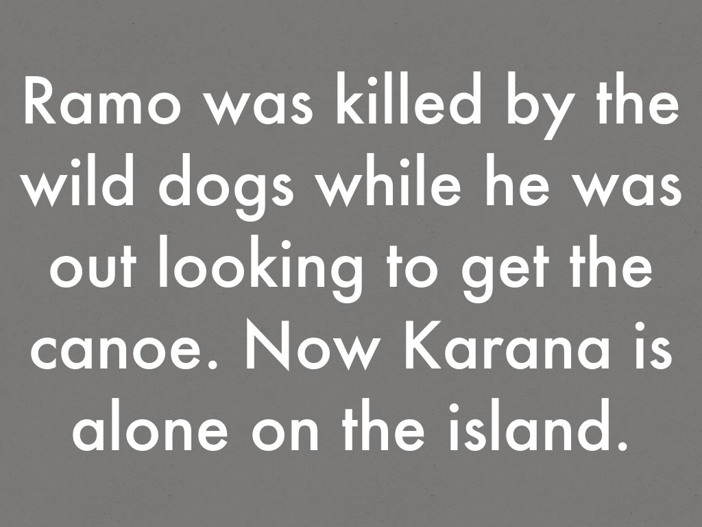 Ramo was killed by the wild dogs while he was out looking to get the canoe. Now Karana is alone on the island.