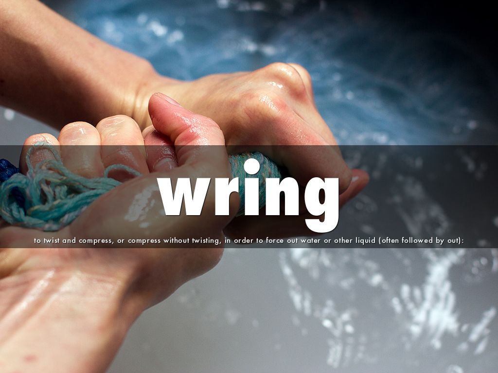 to twist and compress, or compress without twisting, in order to force out water or other liquid (often followed by out):