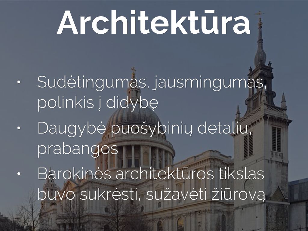 Barokinės architektūros tikslas buvo sukrėsti, sužavėti žiūrovą