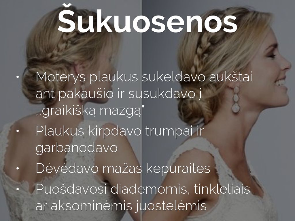 Moterys plaukus sukeldavo aukštai ant pakaušio ir susukdavo į ,,graikišką mazgą"