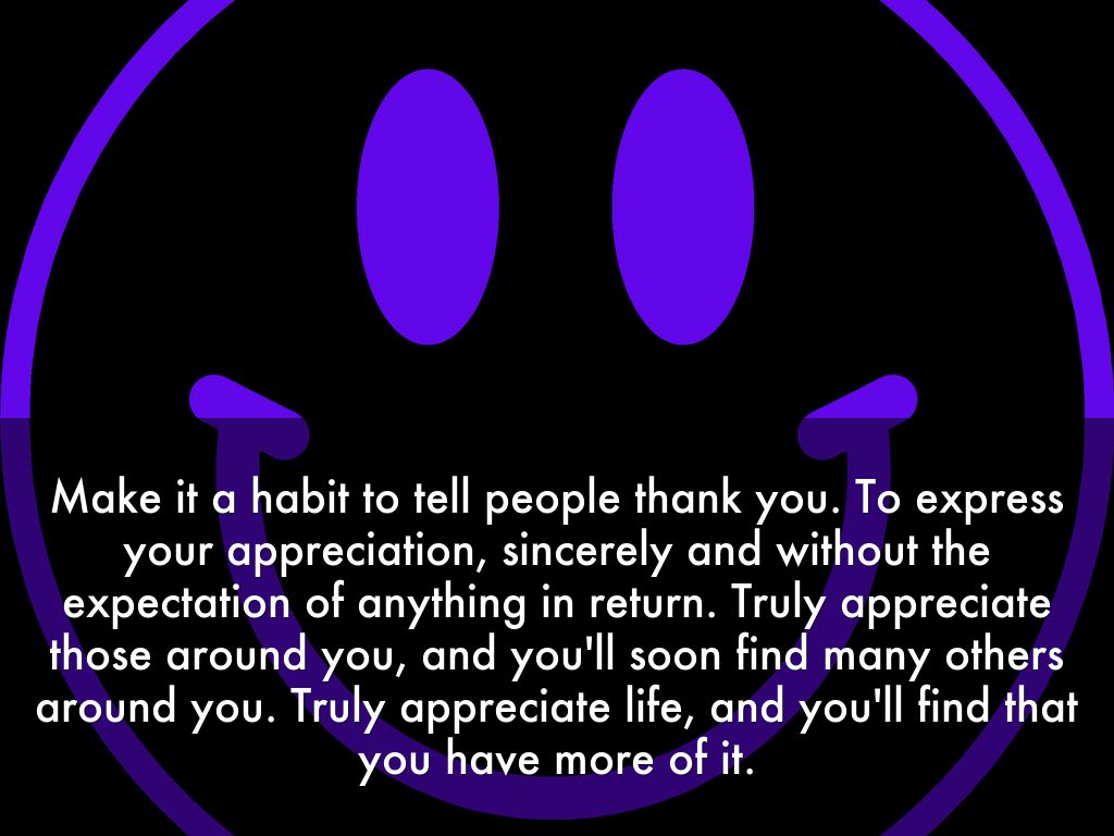 Make it a habit to tell people thank you. To express your appreciation, sincerely and without the expectation of anything in return. Truly appreciate those around you, and you'll soon find many others around you. Truly appreciate life, and you'll find that you have more of it.